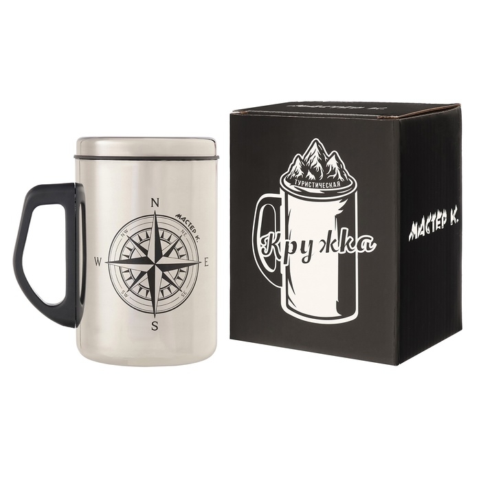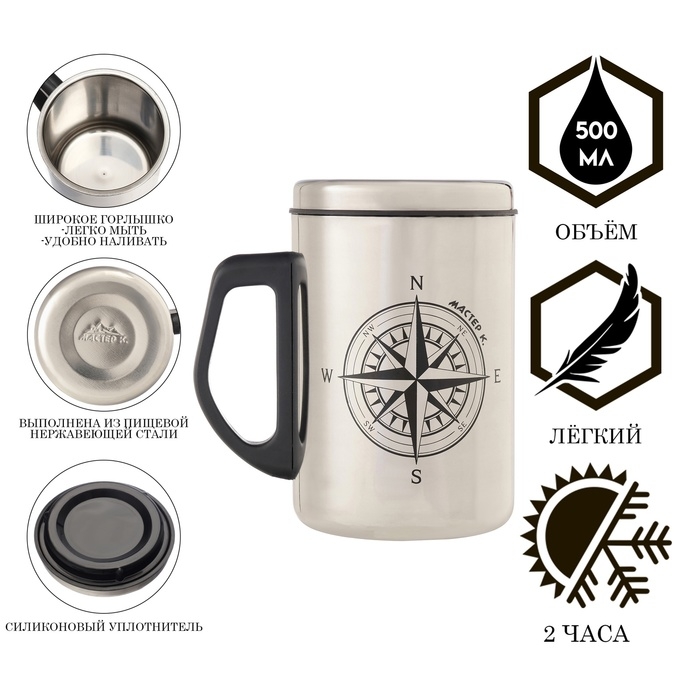 Термокружка, 500 мл, Сталь "Компас", сохраняет тепло 2 ч, 13.5 х 8.3 см