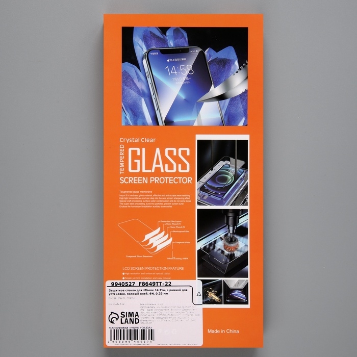 Защитное стекло для iPhone 14 Pro, с рамкой для установки, полный клей, 9H, 0.33 мм
