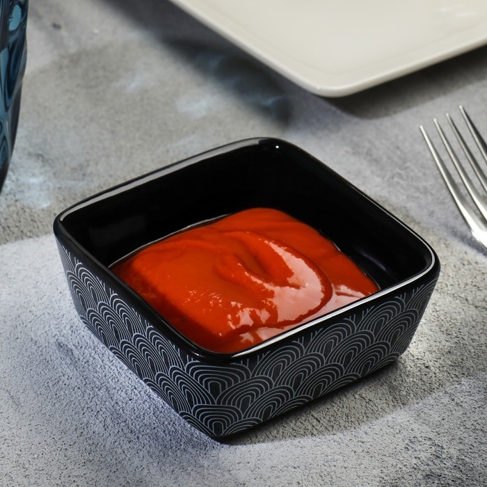 Соусник керамический «Орнамент», 8.5 х 8.5 х 3.5 см, цвет чёрный