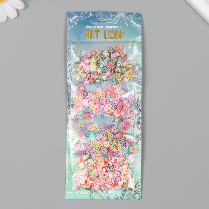 Декор для творчества пластик "Цветы и сладости" набор 4 вида х 5 гр 8х20 см