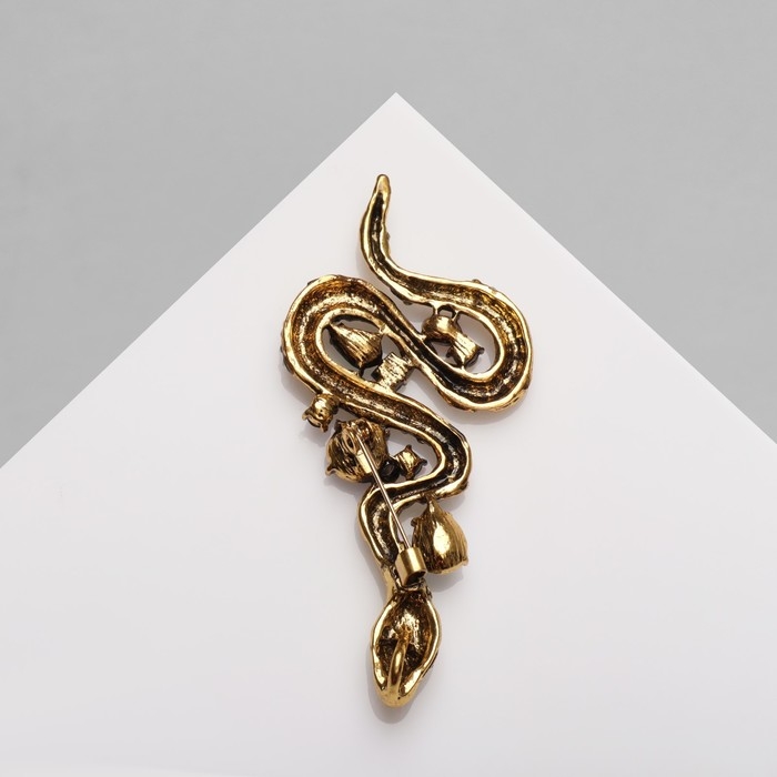 Новый год! Символ года 2025! Брошь «Змея» с камнями, цветная в чернёном золоте