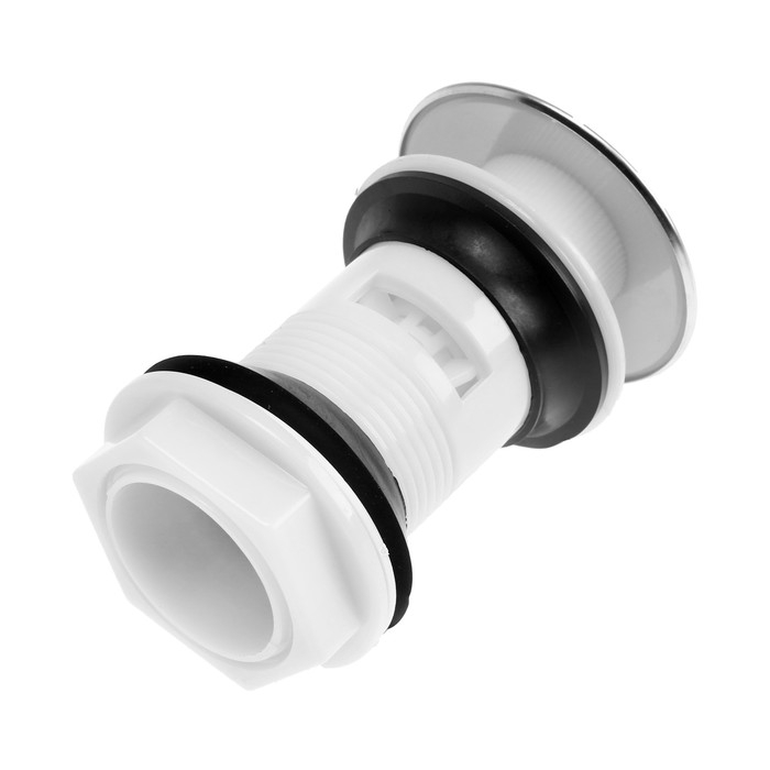 Модель проста в эксплуатации, оснащена удобным запирающим механизмом, который перекрывает слив воды из раковины в трубу одним нажатием.