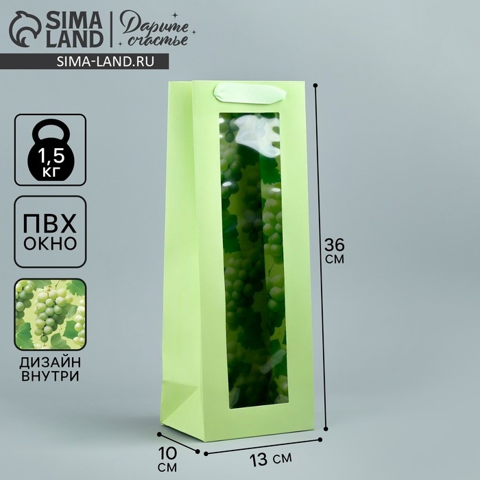 Пакет подарочный под бутылку, упаковка, «Виноград», 36 х 13 х10 см