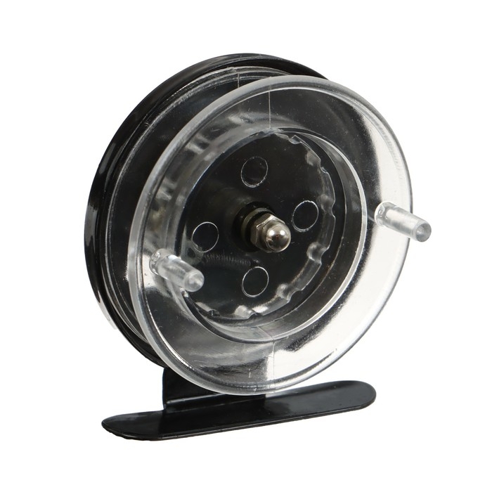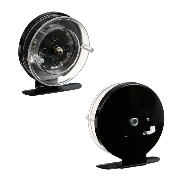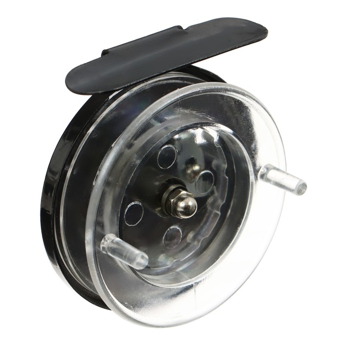 Катушка инерционная, металл пластик, диаметр 6.5 см, цвет черный-прозрачный, 701