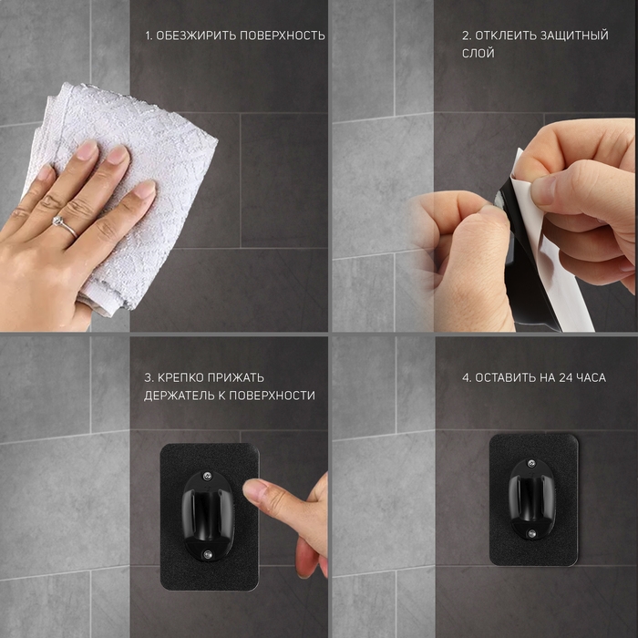 Держатель для душевой лейки ZEIN Z107, нерегулируемый, самоклеющийся, черный