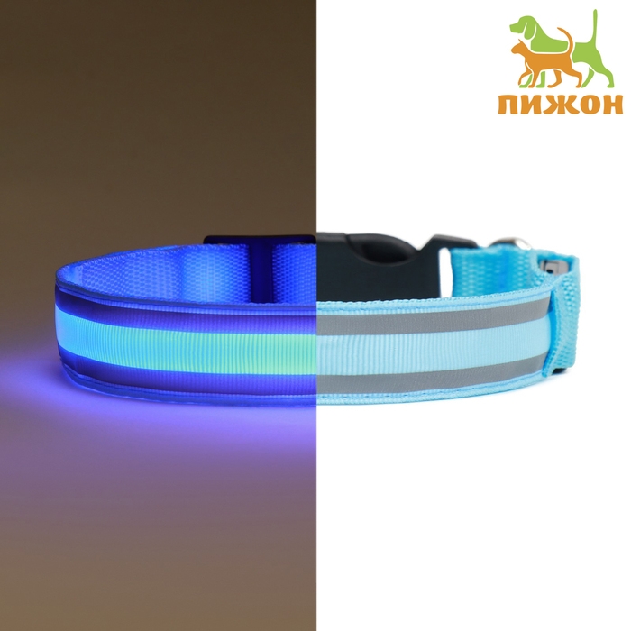Ошейник с подсветкой Двойная полоса размер M, ОШ 40-48 х 2,5 см, 3 режима свечения голубой 977224