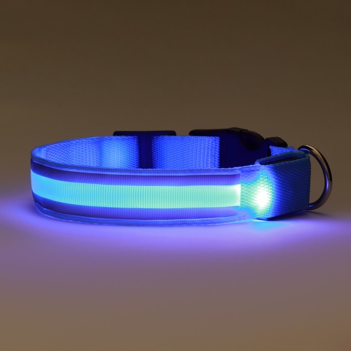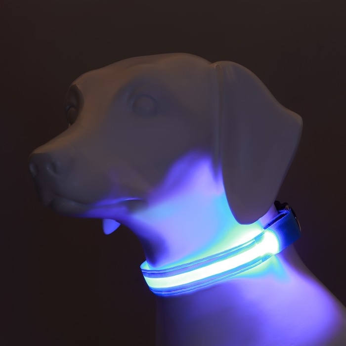 Ошейник с подсветкой "Двойная полоса", 3 режима свечения, голубой