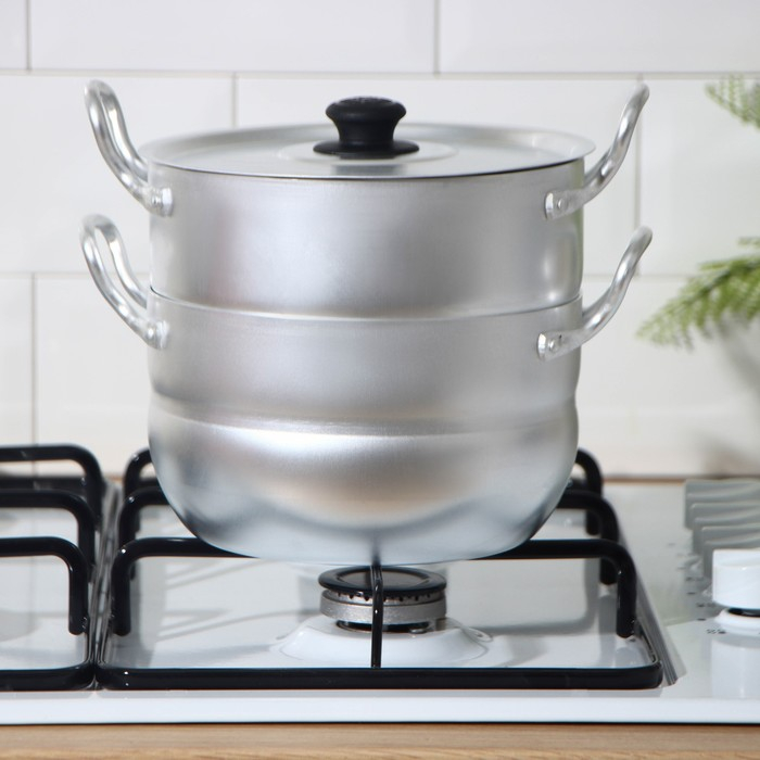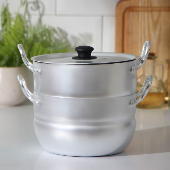 Мантоварка эмалированная «Позница», 7,5 л, 2 вставки, цвет белый