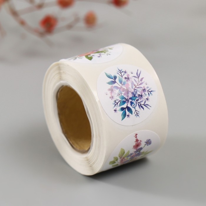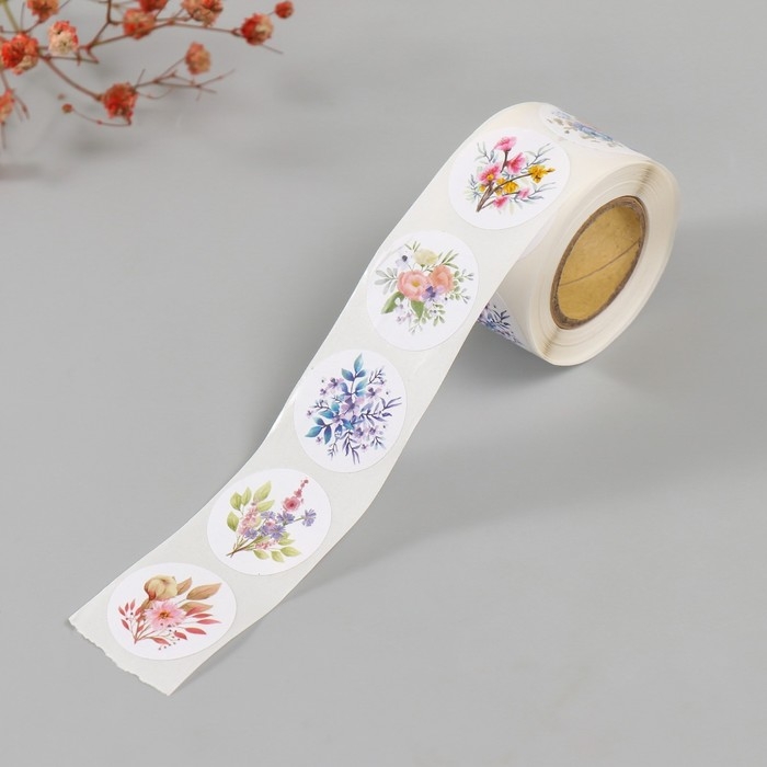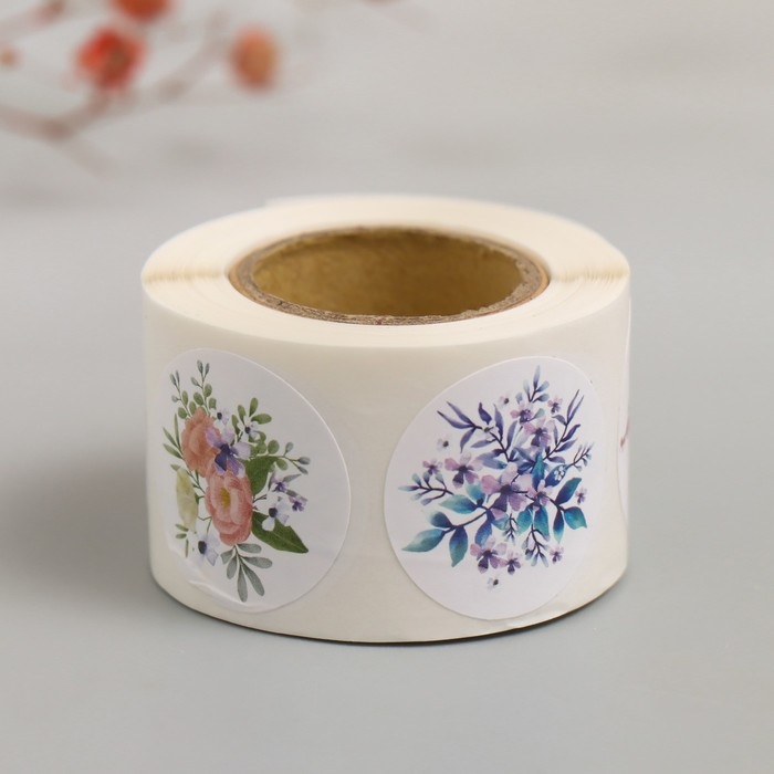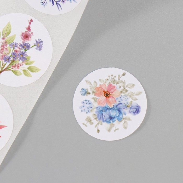 Наклейка бумага "Цветочные букеты" d=2,5 см 252 шт в рулоне