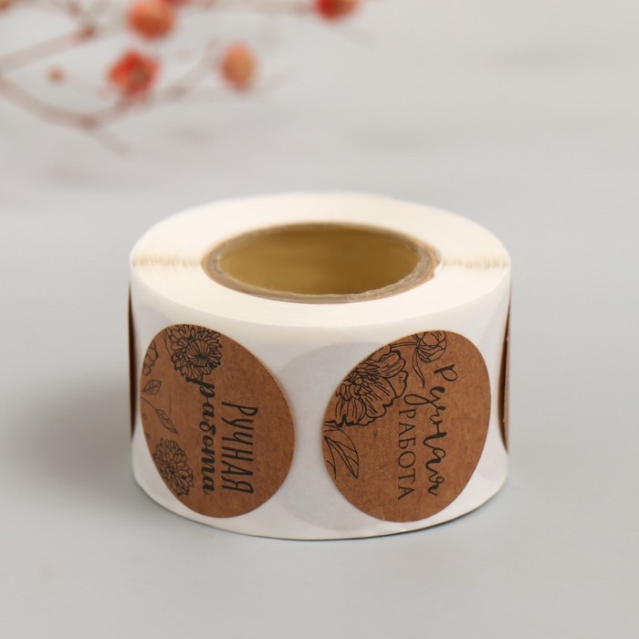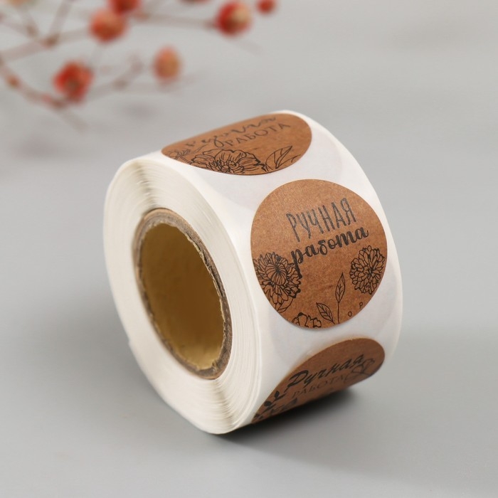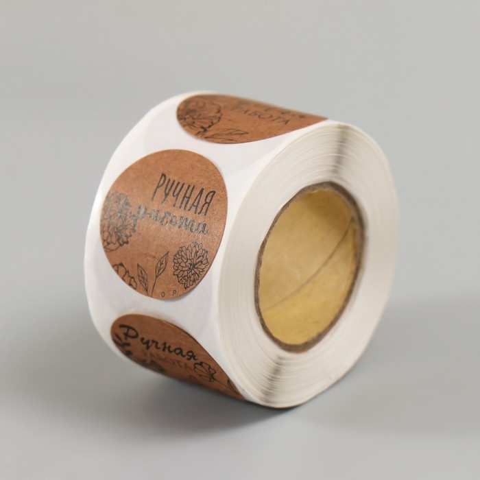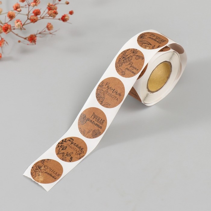Наклейка бумага "Цветочная. Ручная работа" крафт d=2,5 см 252 шт в рулоне