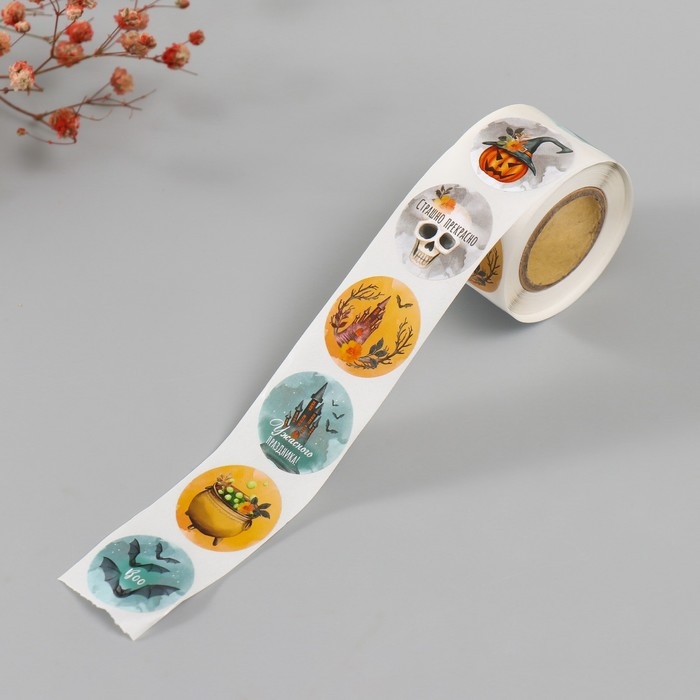 Наклейка бумага "Страшно прекрасно" d=2,5 см 252 шт в рулоне