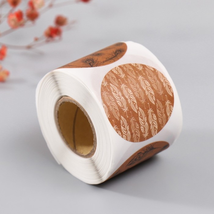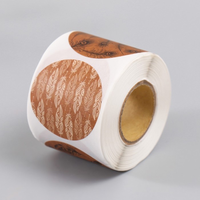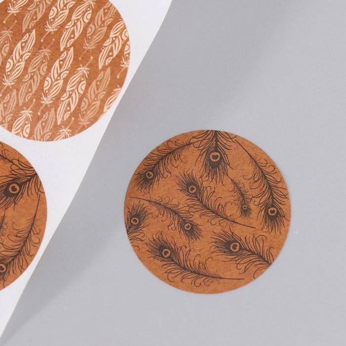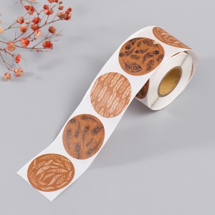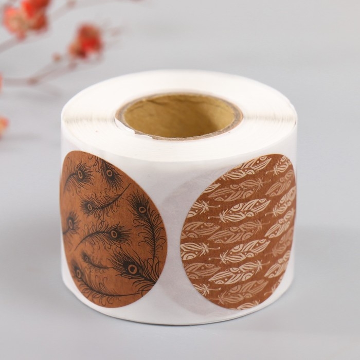 Наклейка бумага "Перья" крафт d=3,8 см 252 шт в рулоне
