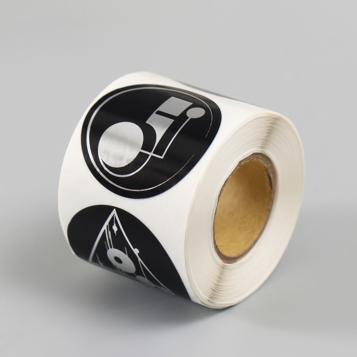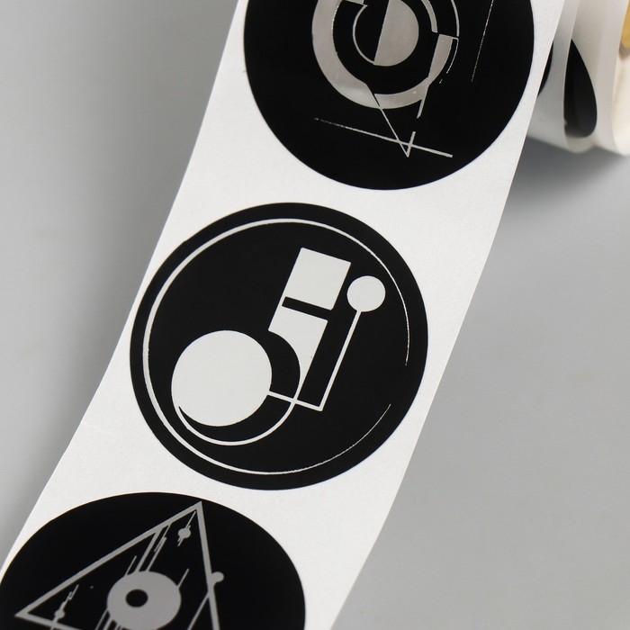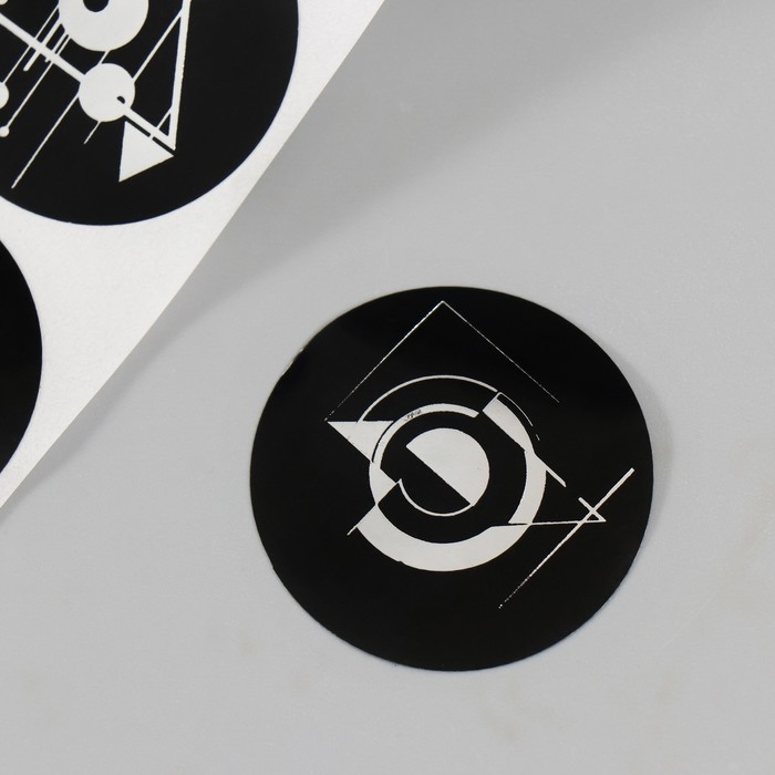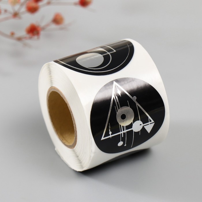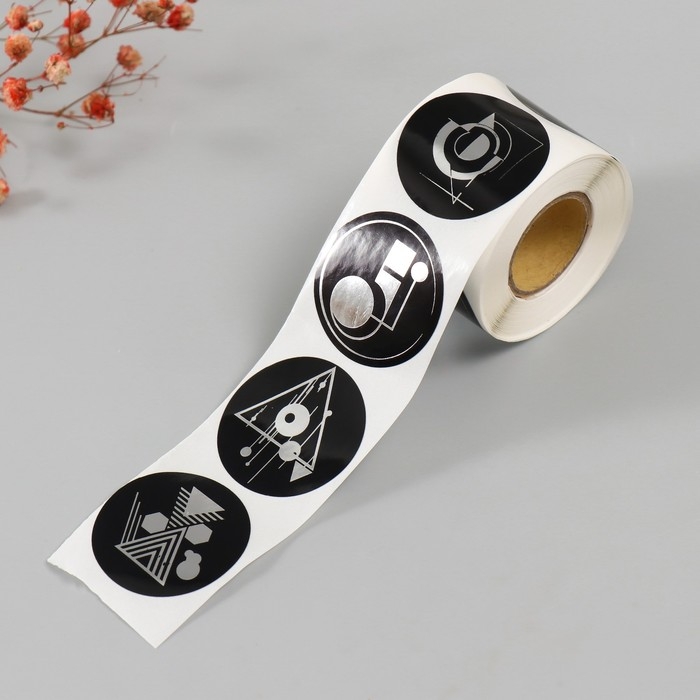 Наклейка бумага "Геометрия абстракция" тиснение серебро d=3,8 см 252 шт в рулоне
