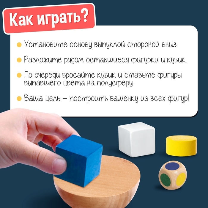 - Задача малыша — построить башню из всех фигур на качающейся платформе!