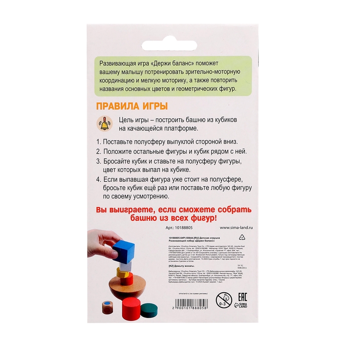 Развивающий набор «Держи баланс» — это увлекательная игра, разработанная для тренировки зрительно-моторной координации, логического мышления и моторики.