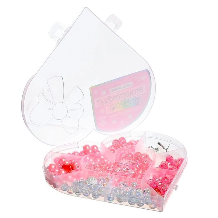 Набор для творчества «Создай украшение» — идеальное решение для занятия творчеством! В наборе вы найдёте бусины разных цветов и размеров, шармы и нитки. Все элементы находятся в прочной пластиковой коробочке в форме сердца.