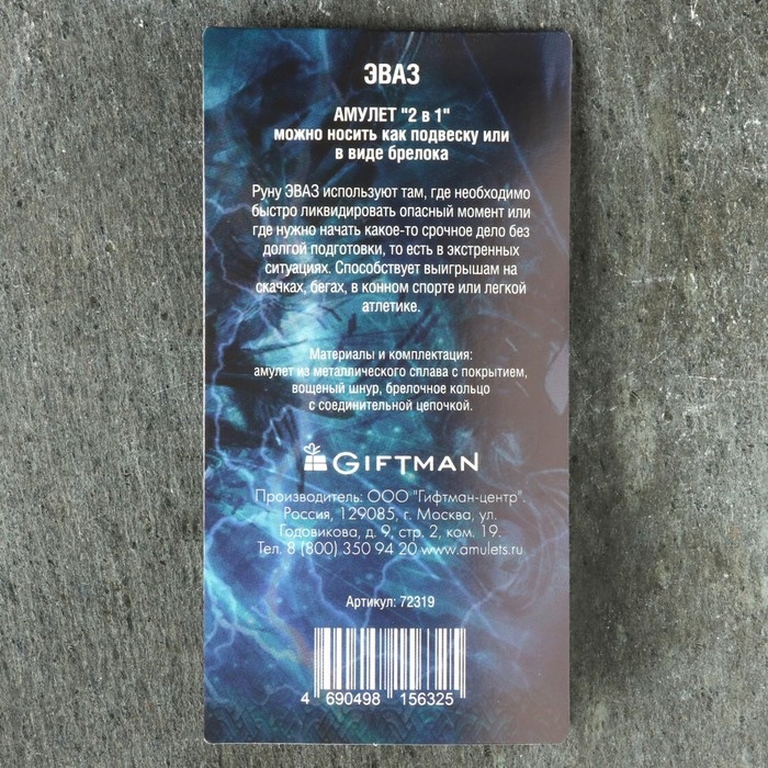 Амулет "Скандинавские Руны", руна ЭВАЗ, 21х29мм, металлический