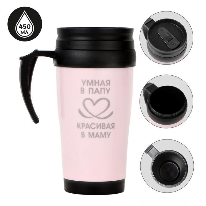 Термокружка, 450 мл, Classic "Умная в папу - красивая в маму", сохраняет тепло до 2 ч