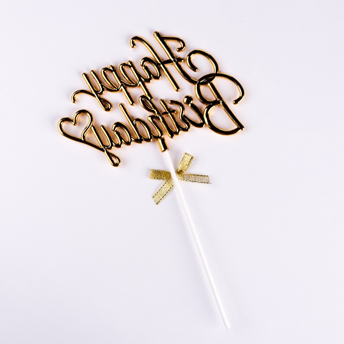 Топпер "Happy Birthday", золотой, с бантиком, Дарим красиво