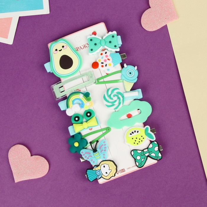 Набор для волос "Маленькие радости" (14 шт) авокадо, зелёный