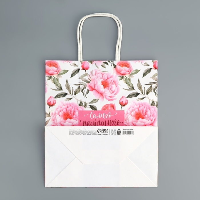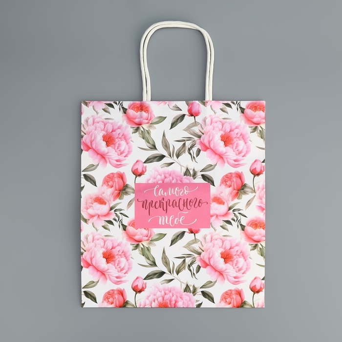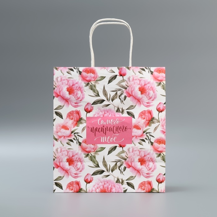 Пакет подарочный крафтовый, упаковка, «Самого прекрасного», цветы, 22 х 25 х 12
