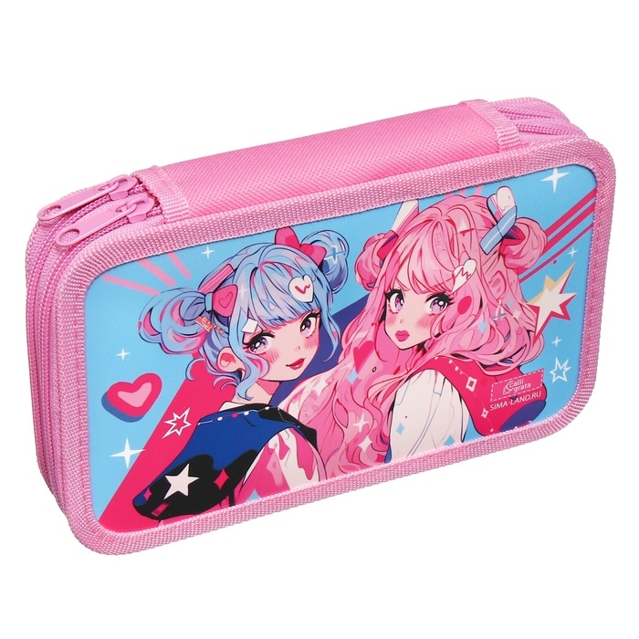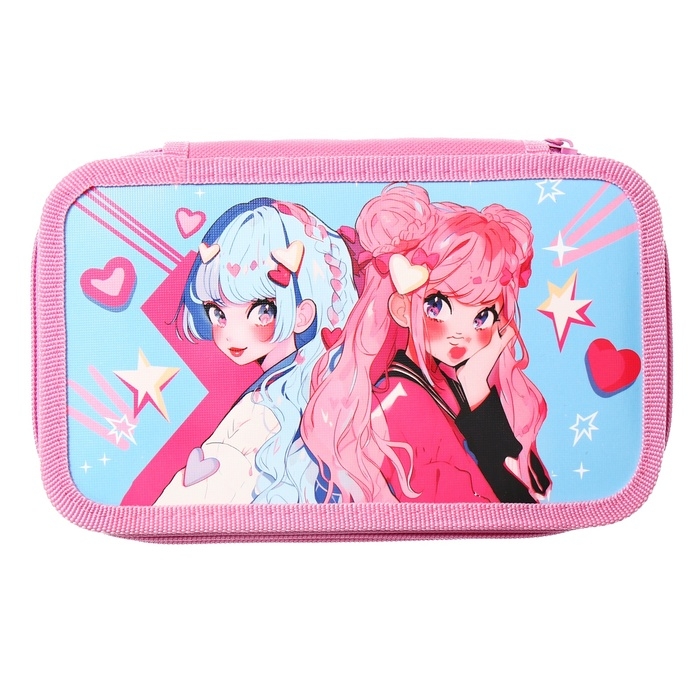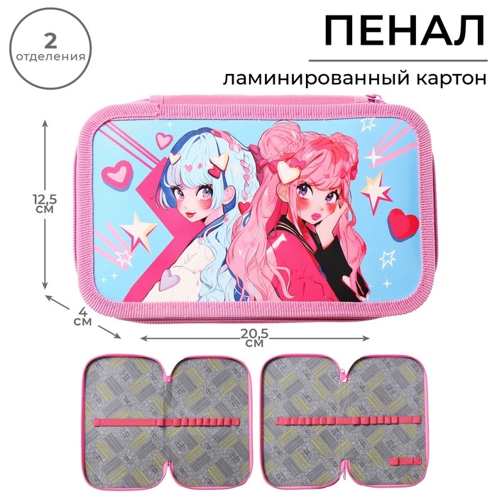 Пенал 2 секции, 125 х 205 х 40 мм, Calligrata 30П26/2 "Аниме подружки", ламинированный картон