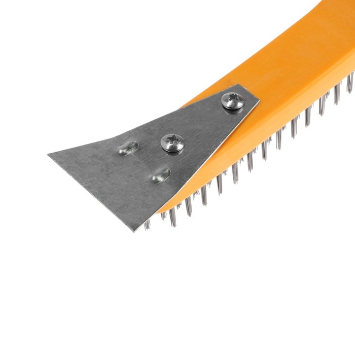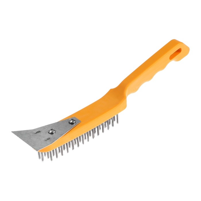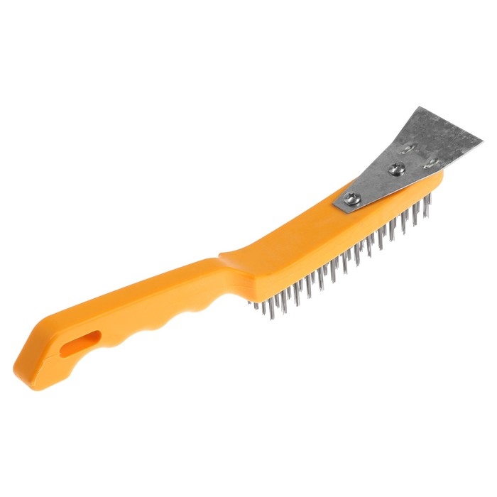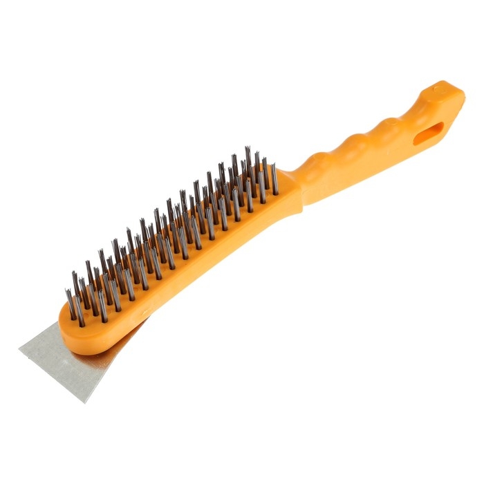 Щетка металлическая ручная ТУНДРА, со шпателем, пластиковая рукоятка, 4-рядная