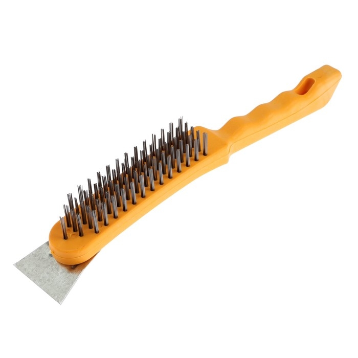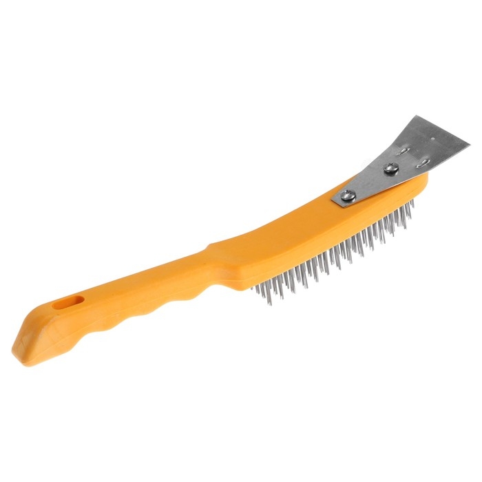 Щетка металлическая ручная ТУНДРА, со шпателем, пластиковая рукоятка, 5-рядная