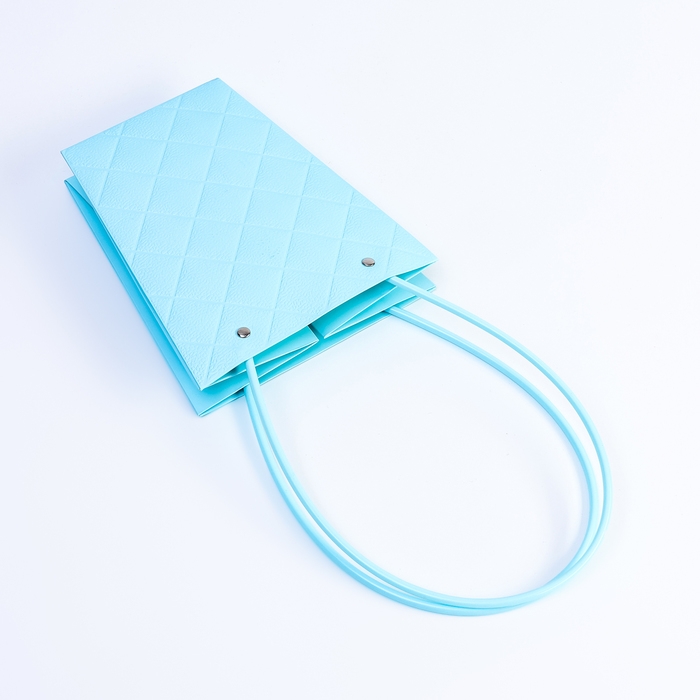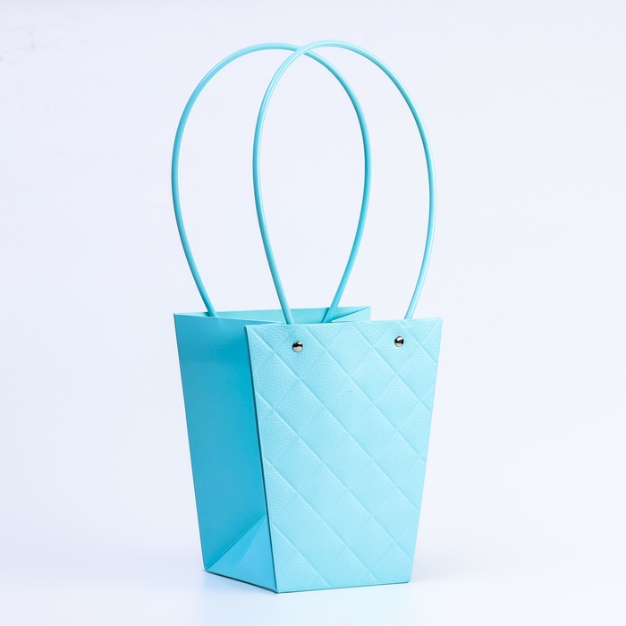 Сумка для цветов тиснение голубой влагостойкая, 17x17-11.5x11.5-20 см