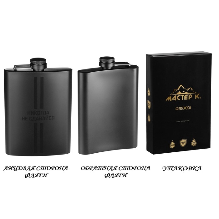 Фляжка для алкоголя "Никогда не сдавайся", нержавеющая сталь, 240 мл, 8 oz