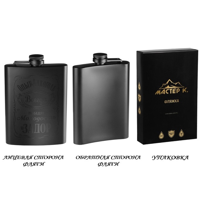 Фляжка для алкоголя "Опыт и алкоголь", нержавеющая сталь, подарочная, 240 мл, 8 oz