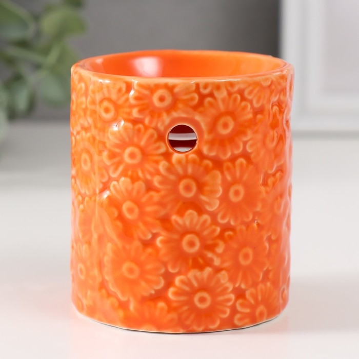 Аромалампа керамика "Ромашки" оранжевая 6,7х6,7х7,5 см