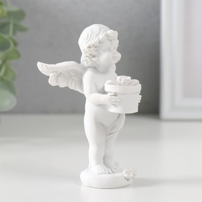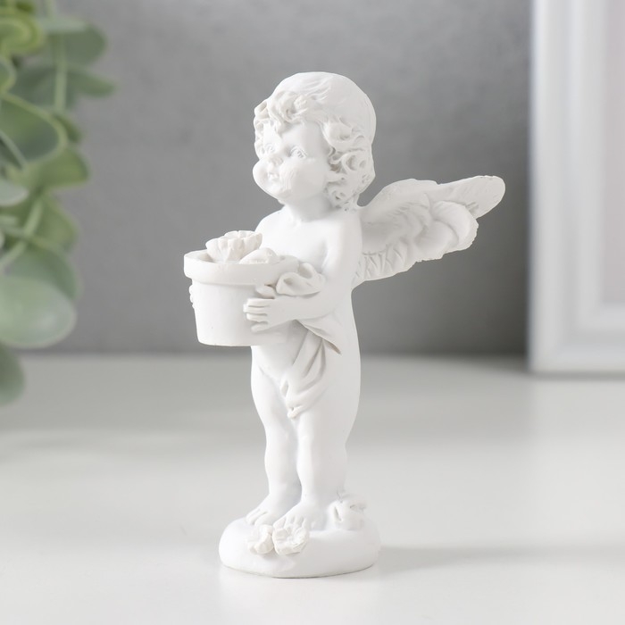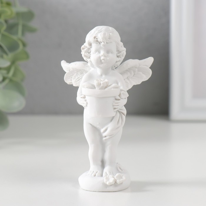 Сувенир полистоун "Белоснежный ангел с цветком в горшке" 9,7х6х6,5 см