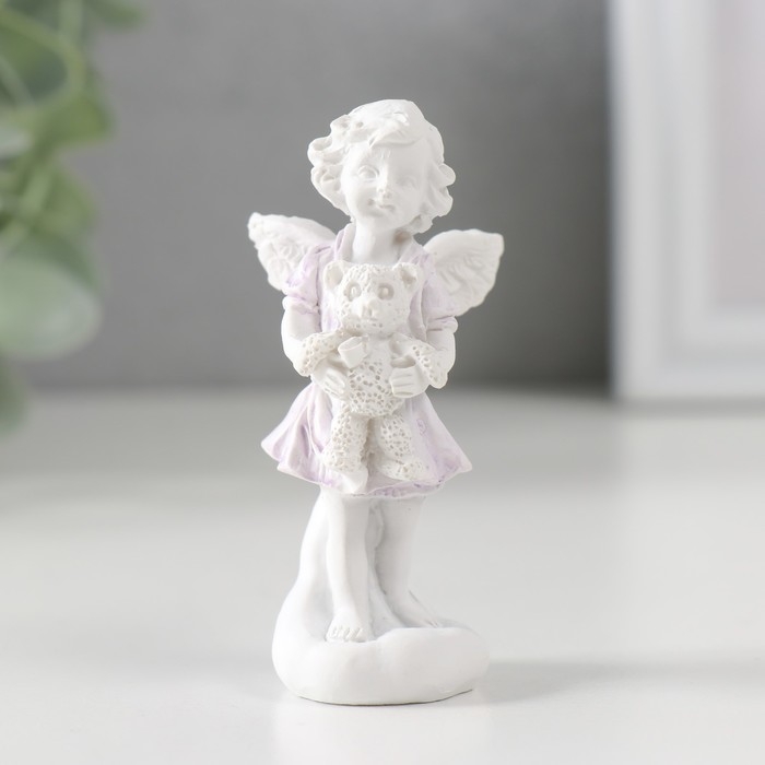 Сувенир полистоун "Белоснежный ангел в цветной тоге с мишкой" 7,2х3,5х2,8 см