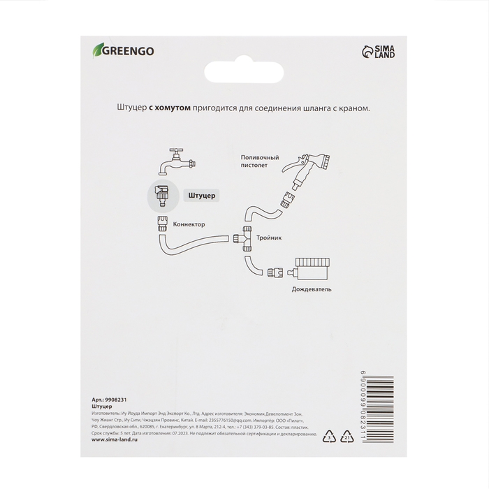 Штуцер, наружная резьба 3/4", быстросъёмное соединение, пластик, Greengo