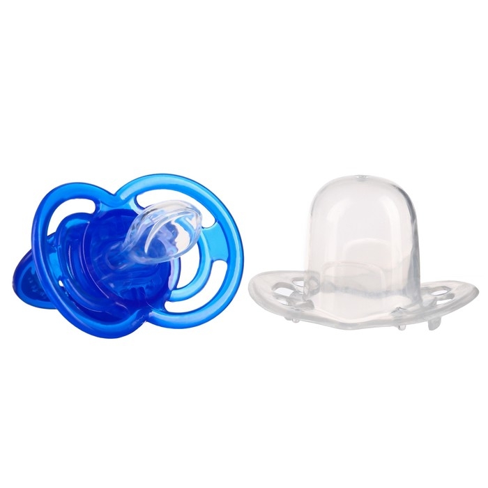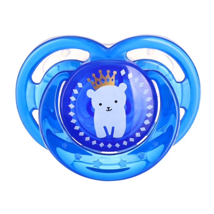 Соска- пустышка ортодотническая «Мишка» с колпачком, +6 мес., голубой