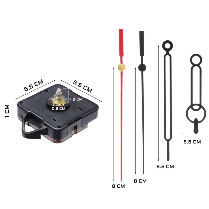 Часовой механизм со стрелками «Соломон-32», плавный ход, шток 16 мм, стрелки 55/85/80 мм