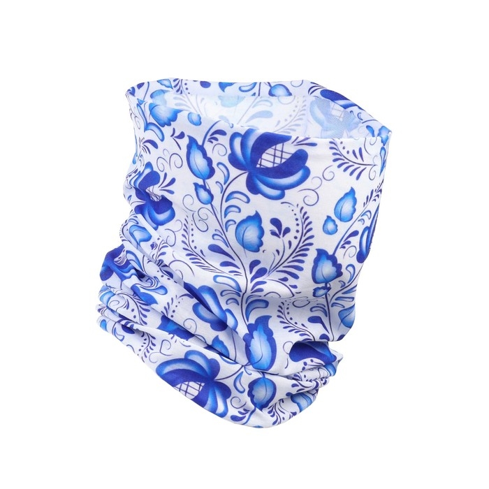 Бафф туристический "Гжель" для защиты от ветра и пыли, белый с синим