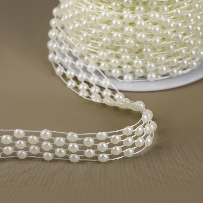 Жемчуг на нитях, плоский, 14 мм, 9 ± 1 м, цвет белый