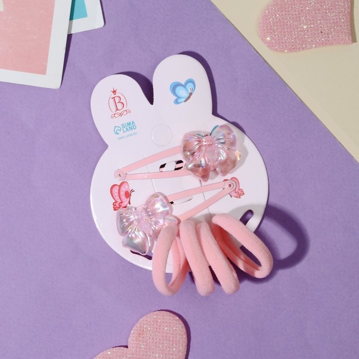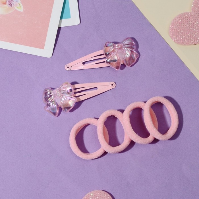 Набор для волос "Розовое чудо" (2 невидимки 5 см, 4 резинки) бантик, розовый