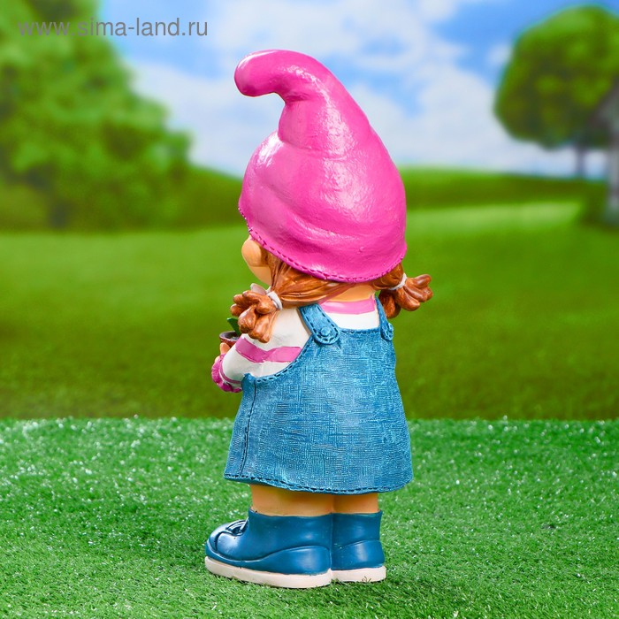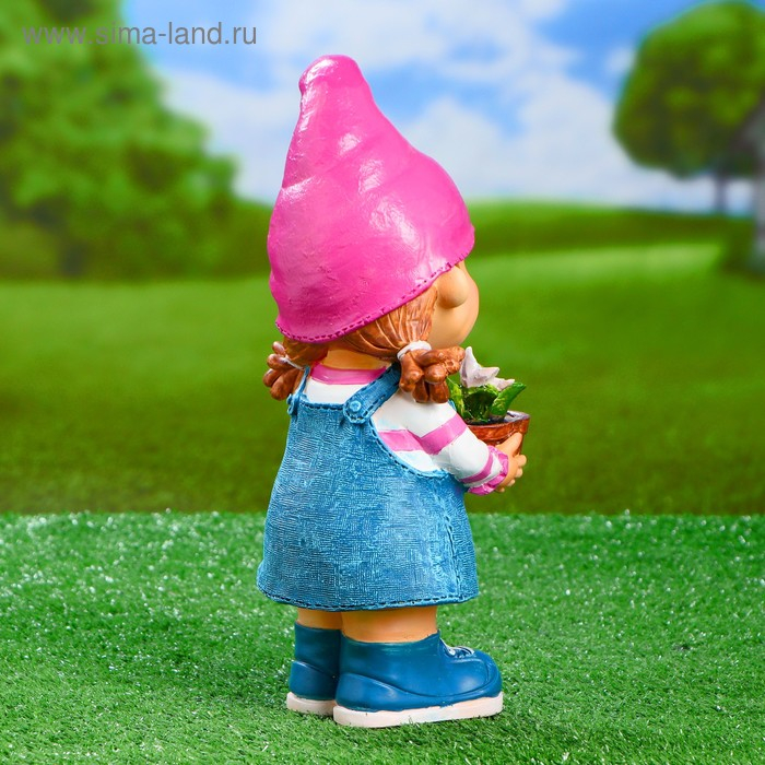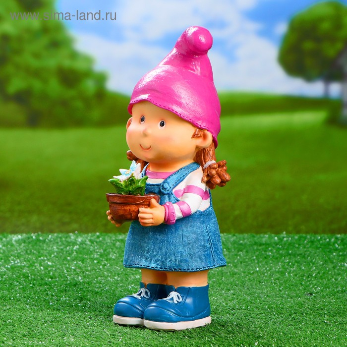 Садовая фигура "Девочка-гном с цветочком" 15х13х32см