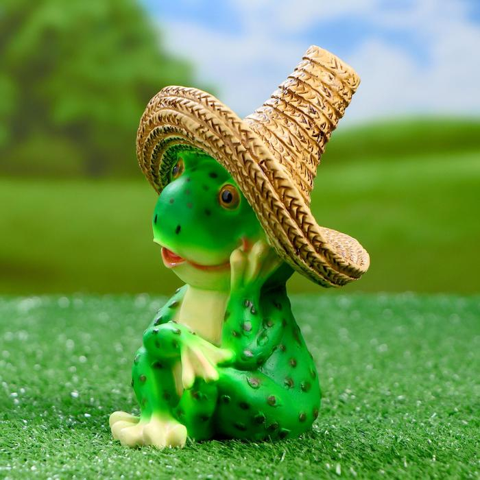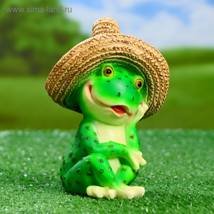 Садовая фигура "Лягушка в соломенной шляпе" 11х12х16,5см