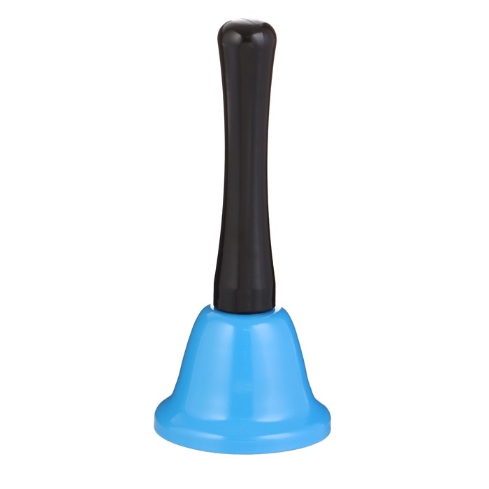Яркий и стильный, изготовленный из тонкого металла он обеспечивает чистый и звонкий звук, а ручка помогает удерживать изделие. Колокольчик имеет голубой цвет, который привлекает внимание, компактный и удобный в использовании.