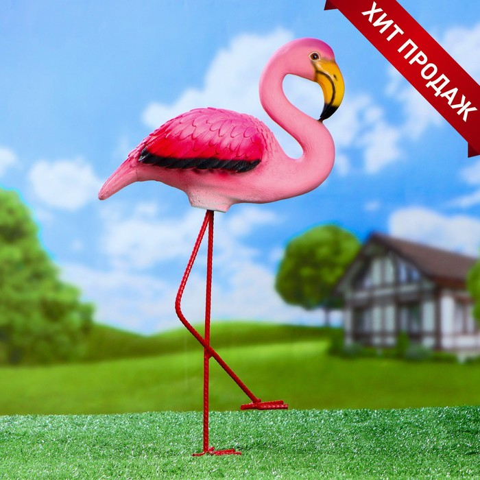 Садовая фигура "Розовый фламинго" 23х14х49см