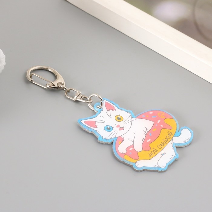 Брелок акрил "Котёнок с пончиком - мой сладкий" 4,5х5,3 см