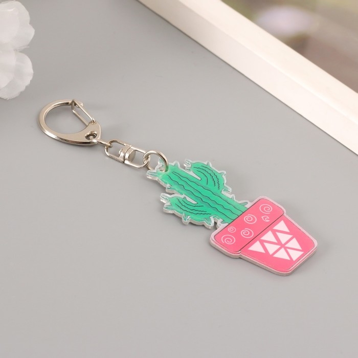 Брелок акрил "Кактус в розовом горшке" 3х5,8 см