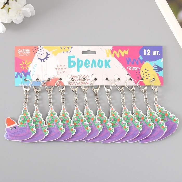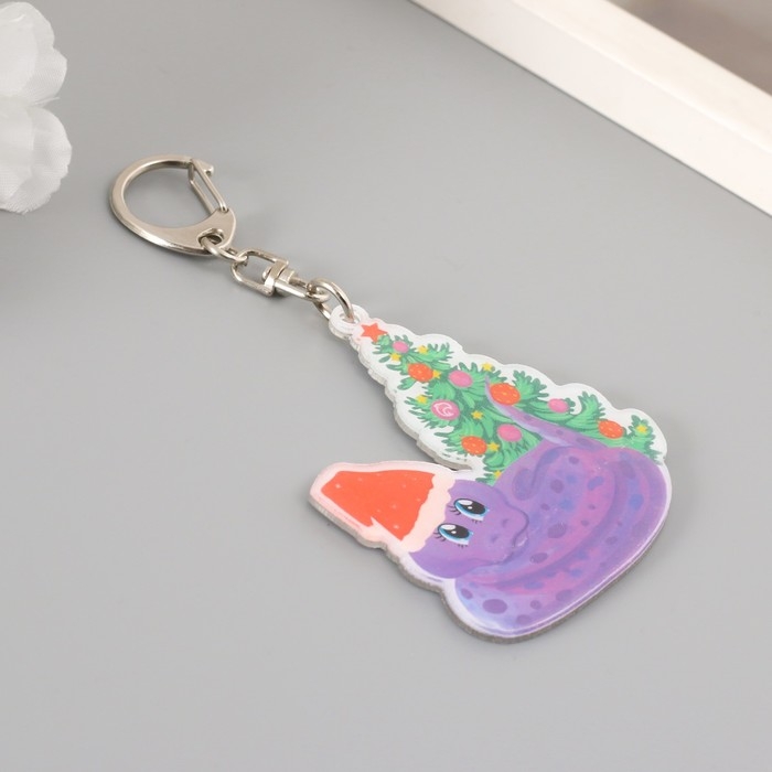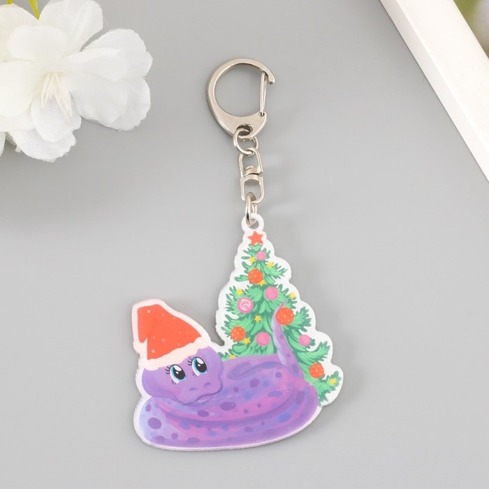 Брелок акрил "Змей в новогоднем колпаке, с ёлочкой" 6х5,4 см