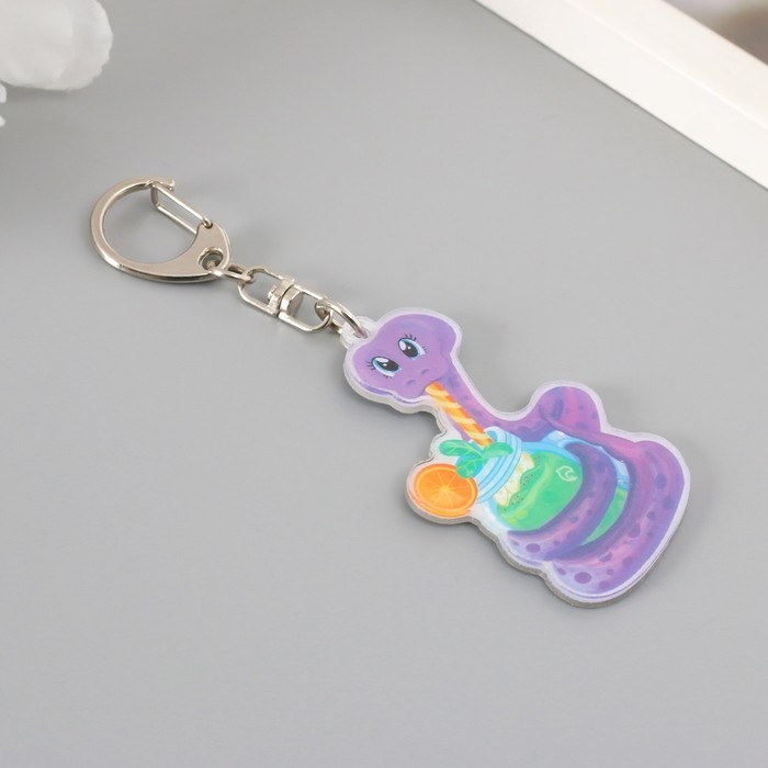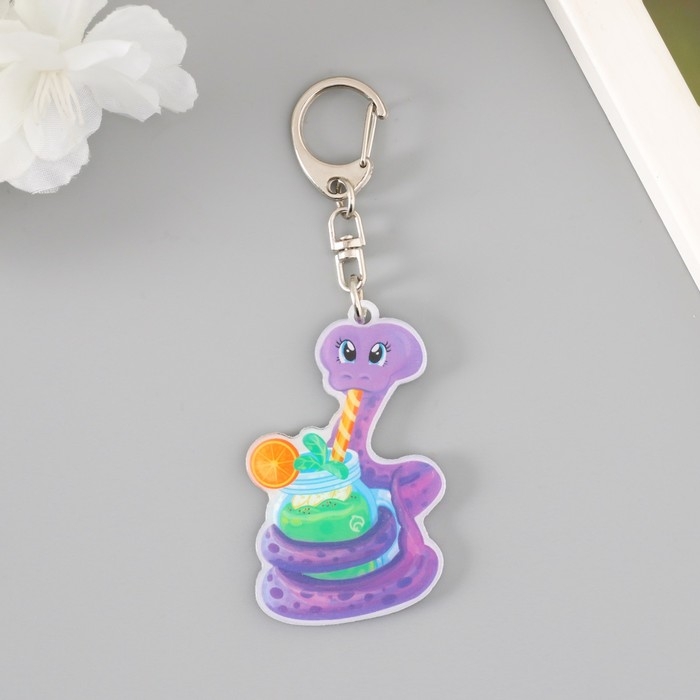 Брелок акрил "Змей с лимонадом в стеклянной кружке" 5,8х3,8 см