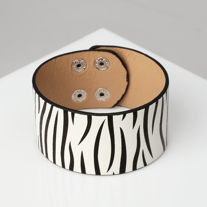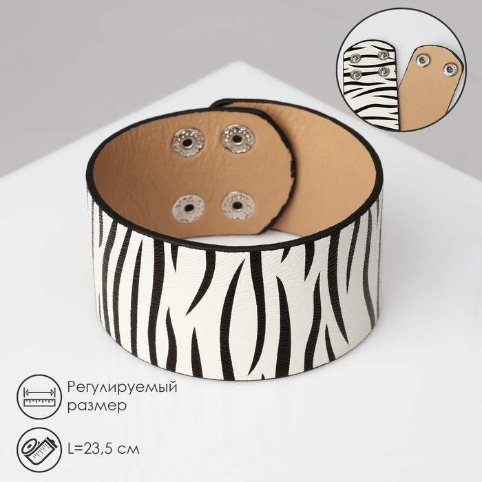 Браслет кожа «Сафари» зебра, широкий, цвет чёрно-белый, 23,5 см