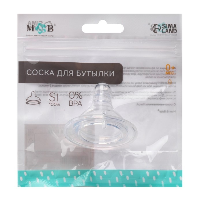 Соска на бутылочку, антиколиковая, от 0 мес., M&B Standard, широкое горло, медленный поток, Ø50 мм.